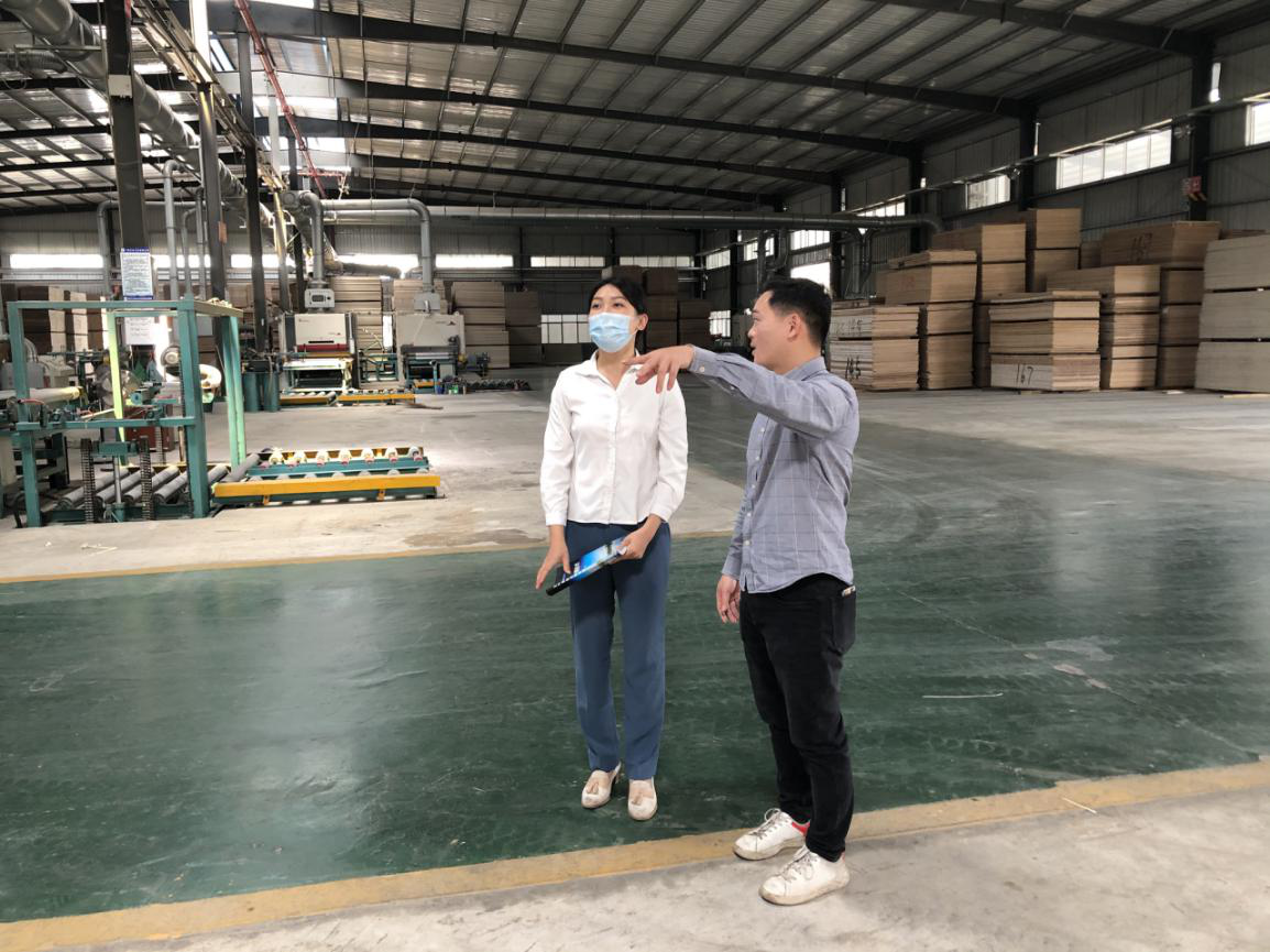 参观亿松木业,企业负责人介绍粉尘处理系统