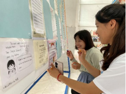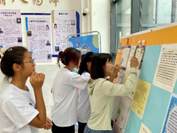 展览现场设置了英语美文书写和书法技巧分享环节。我们将英语老师们自己书写的英语美文书法作为模版,邀请前来观展的师生参考模板进行现场书写,鼓励师生们积极交流自己的书法心得和体会,共同提高英文书写水平。