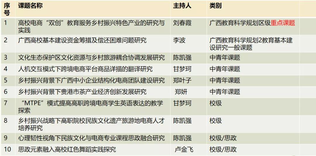 商学院以国家倡导的“国际国内双循环”经济战略为指导,国内以区域电商经济大循环为主体,国际以东盟跨境电商为主,助力双循环互促互补的区域经济新发展格局,多次派教师外出交流学习,帮助教师拓展视野,提升专业素养。此外,商学院为教师提供电子商务师4人次、高级平面设计师2人次、互联网营销师4人次、心理咨询师2人次、“1+X”讲师1人次的培训机会,教师的专业水平在不断学习中得到提升。