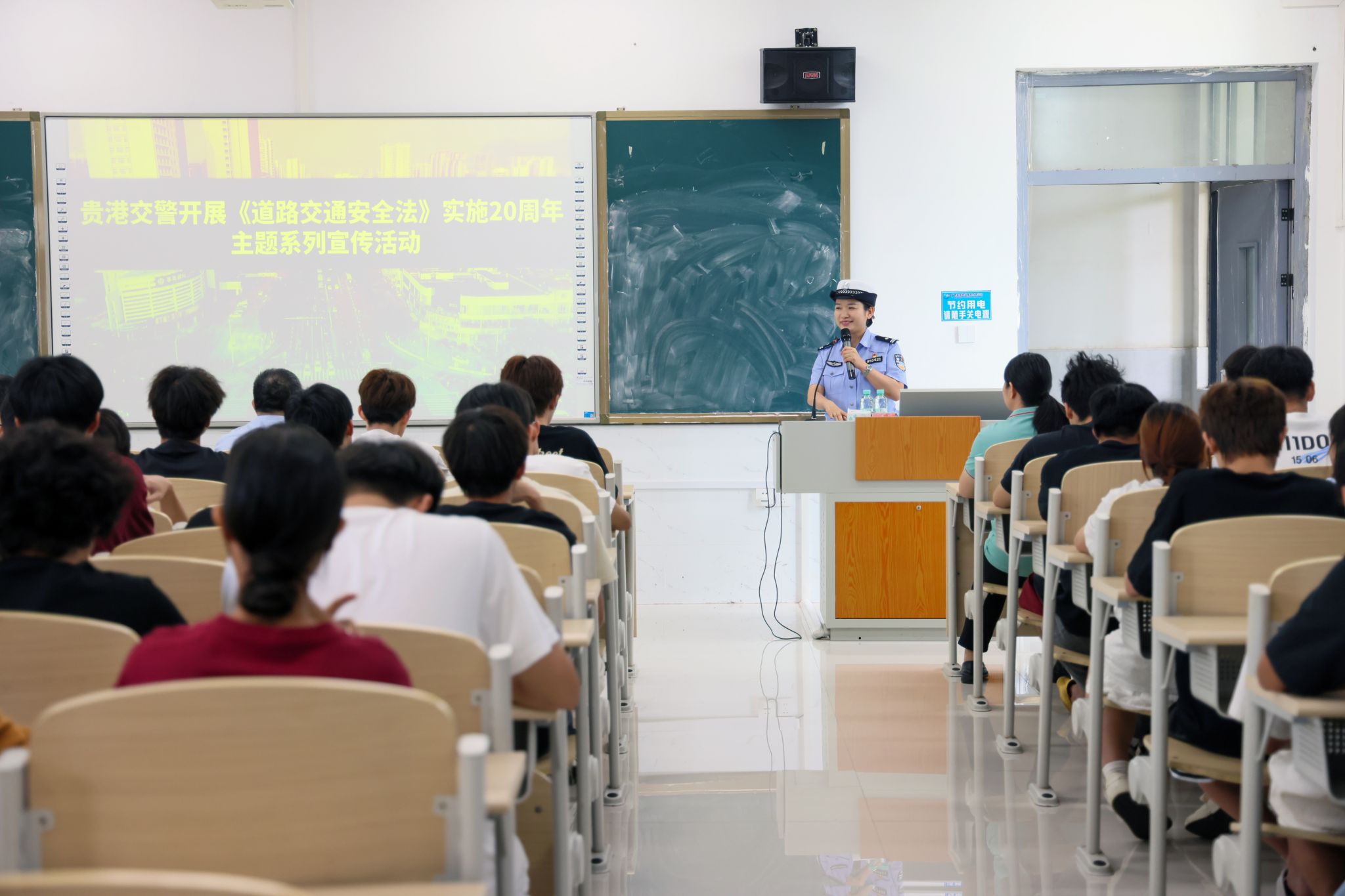 5月21日下午,贵港市交通警察支队宣传科付瑜副科长应邀来到物流交通学院,为学生们带来了一场生动有趣的交通安全知识讲座。付瑜副科长通过案例分析和现场互动,深入浅出地讲解了交通安全的重要性以及日常出行中需要注意的安全事项。讲座现场气氛热烈,学生们纷纷表示受益匪浅。