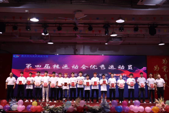 杨一笔、莫军为获得第四届校运会优秀运动员奖项的同学颁奖