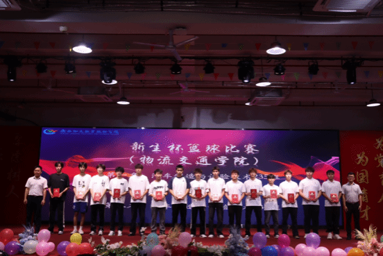 林锋、高成良为获得新生杯篮球比赛奖项的同学颁奖