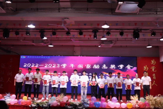 林锋、莫军为获得国家励志奖学金的同学颁奖