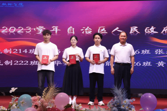 晚会表彰了获得2022—2023学年广西壮族自治区区政府奖学金;2022—2023学年国家励志奖学金;以及共青团工作中表现突出的2023年度五四红旗团支部、优秀共青团干部、优秀共青团员;2024年广西职业院校技能大赛,行业职业技能大赛;创新创业(互联网+)(挑战杯);首届pp电子官方网站职业生涯规划大赛获奖人员;第四届校运会优秀运动员、新生杯篮球比赛、2023年大学生暑期“三下乡”实践活动先进个人以及大学生朋辈心理辅导技能大赛获奖者。旨在鼓励同学们在荣誉的激励下继续前行,认真践行初心使命,学习之余积极参加校园活动,感受青春的热烈,丰富生活、增强本领,在追梦的道路上彰显青春担当。