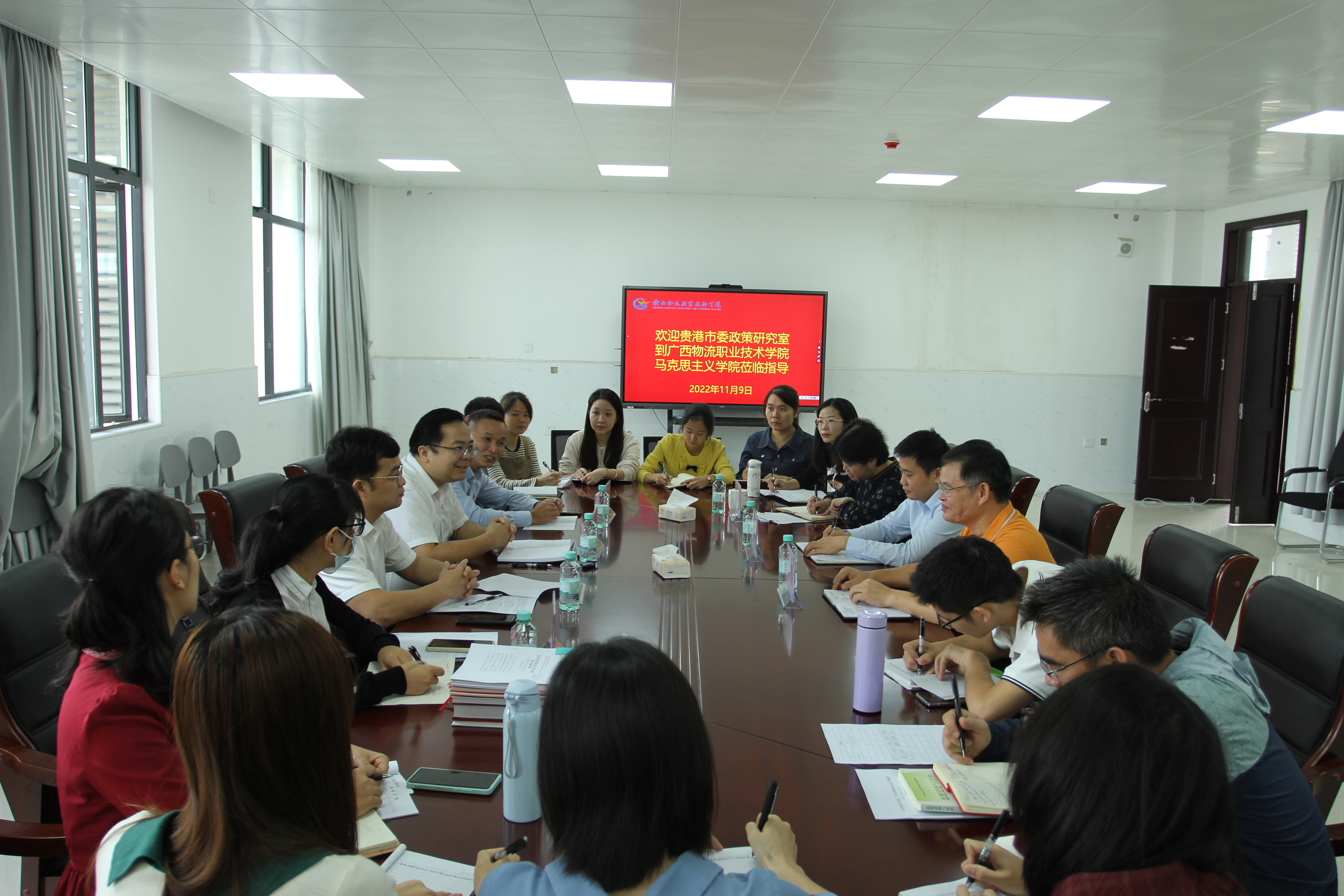 11月9日上午,贵港市委政策研究室(改革办)主任罗觉珉带队,副主任陆剑忠、科长谢世艳,《贵港工作》采编中心副主任韦欣彤一行到马克思主义学院进行考察交流,并举行工作座谈。学校党委宣传部部长梁杰,马克思主义院长覃南图、副院长方艳丹以及马克思主义学院全体教师参加座谈会。
