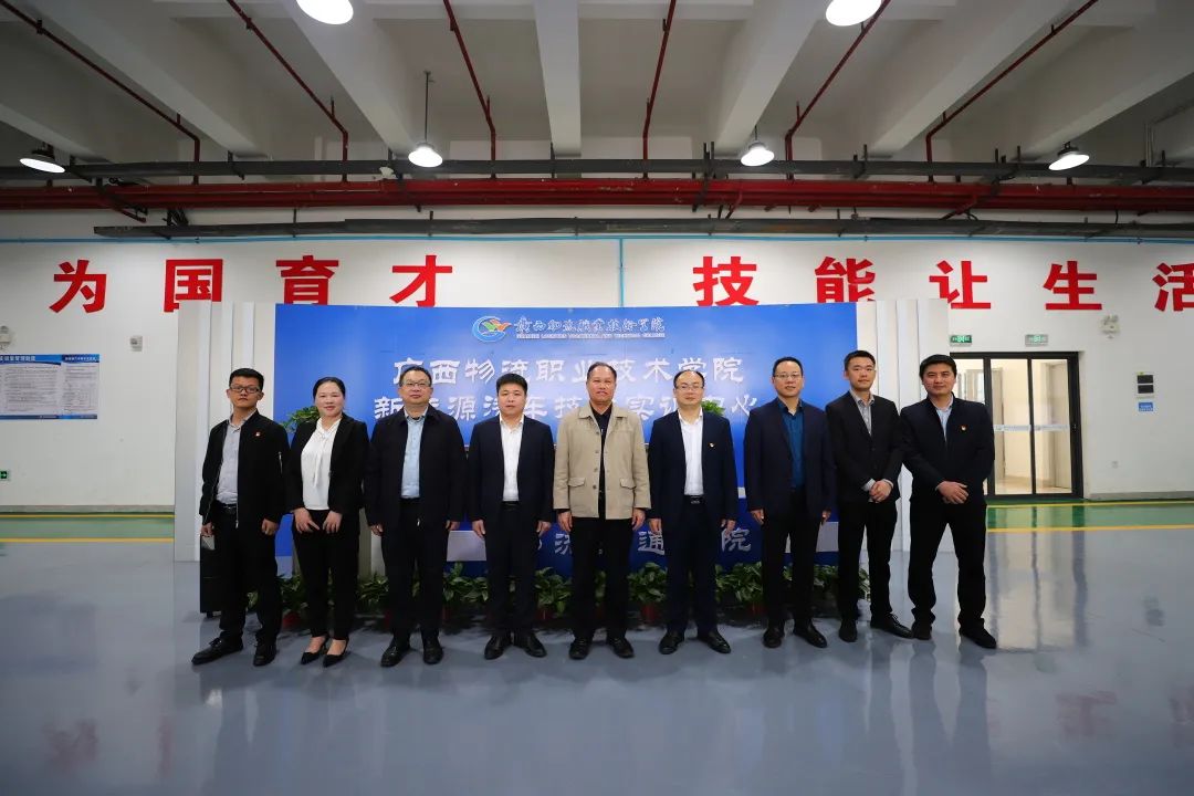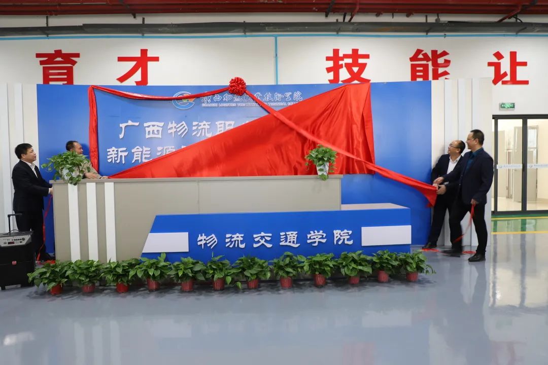 3月1日上午,pp电子官方网站新能源汽车技术实训中心在2号实训楼揭牌成立,标志着学校实训基地建设工作迈出了坚实的一步。学校党委副书记杨一笔、副院长陈赋光,广西桂物机电集团有限公司副总经理吴文斌、广西一驰教育科技有限公司董事长任仲雷出席揭牌仪式并为实训中心揭牌。广西教学名师、正高级讲师、物流交通学院院长莫军主持揭牌仪式。