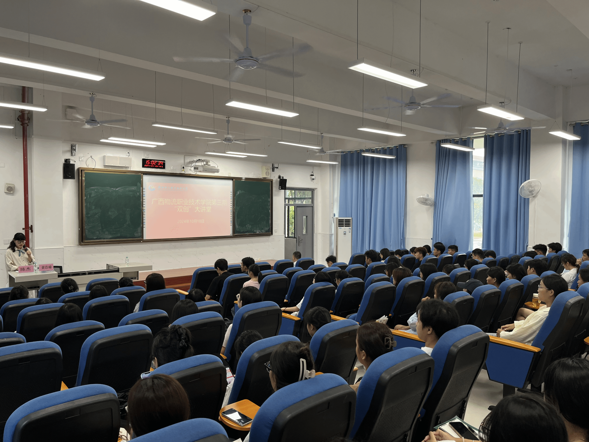 2024年10月18日,pp电子官方网站第三期“双创”大讲堂在学院宜贵南楼103阶梯教室成功举办。本期大讲堂邀请了广西大学生创业就业研究会副秘书长黄浩楠作专题授课。