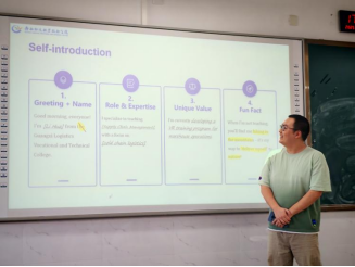 在接下来的环节中,教师们在主持人的引导下,用英语进行了生动有趣的自我介绍,分享了教学趣事和对学校的独特见解。在随后的自由交流环节中,大家围绕校园生活、教学经验等话题展开讨论,既锻炼了口语表达能力,又加深了彼此的了解。
