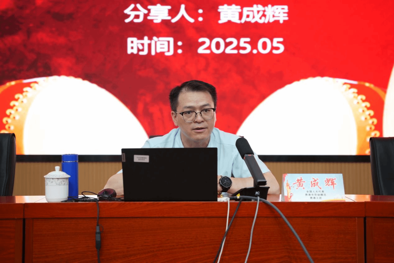 黄成辉以《匠心独运 技能成就人生》为主题分享自身的人大代表履职经历,让同学们感受科技创新的重要性,激励同学们树立新时代奋斗者的理想信念。