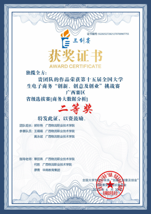 日前,在第十五届全国大学生电子商务“创新、创意及创业”挑战赛省级选拔赛中,由数字电商学院组成的“独揽全方队”在商务大数据分析实战赛中荣获二等奖。