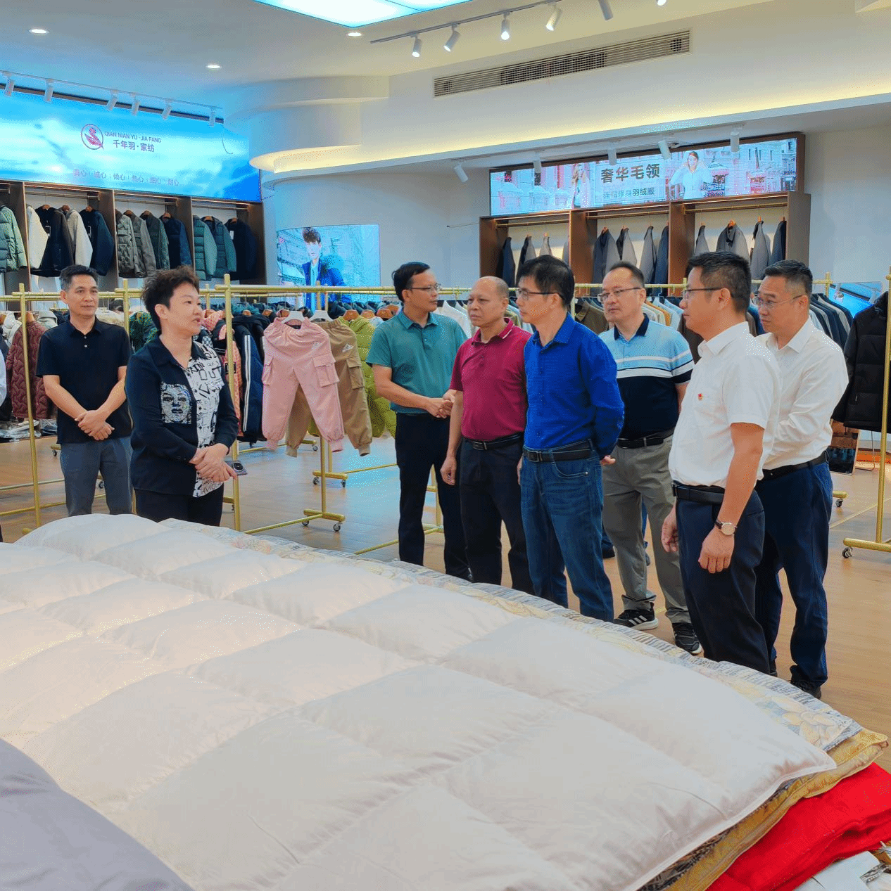 数字电商学院党员教师代表还深入千年羽家纺、荷城羽绒等企业,调研羽绒产业发展史与羽绒被制作流程,精准掌握企业实际需求。