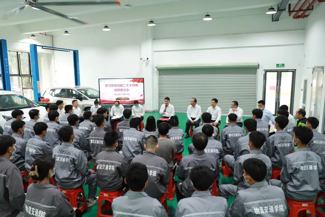 报告会后,韦光茂来到物流交通学院进行调研,与青年师生代表现场互动交流,认真聆听大家学习贯彻党的二十大精神心得体会,强调物院青年要将学习宣传贯彻党的二十大精神落到具体的实践上,不负韶华、只争朝夕,珍惜时代机遇、担负时代使命,在担当中历练、在奋斗中成长,铸就驱动中华民族加速迈向伟大复兴的蓬勃力量,以当代青年的最好成绩回馈伟大时代。