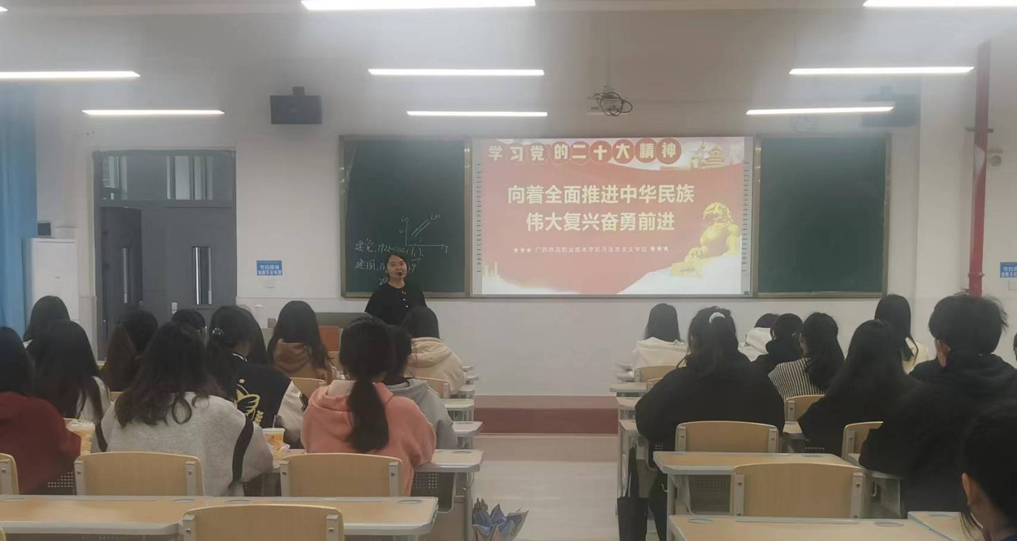 课堂教学主要围绕党的二十大主题和主要成果、过去五年的工作和新时代十年的伟大变革、马克思主义中国化时代化新境界、以中国式现代化全⾯推进中华民族伟⼤复兴、未来五年开局起步关键时期的战略任务和重⼤举措、全⾯建设社会主义现代化国家、全⾯推进中华民族伟⼤复兴关键在党等方面的内容,对二十大的精神进行了系统的讲授,同时结合习近平总书记参加党的二十大广西代表团讨论时对广西发展提出的五个“牢牢把握”的重要要求,并结合pp电子学生实际进行了深入阐述。