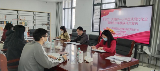 12月9日下午,广西现代物流集团党委宣讲团职业教育宣讲队成员、pp电子官方网站马克思主义学院院长覃南图与马克思主义学院的思政教师进行了一次学习党的二十大精神专题座谈会。