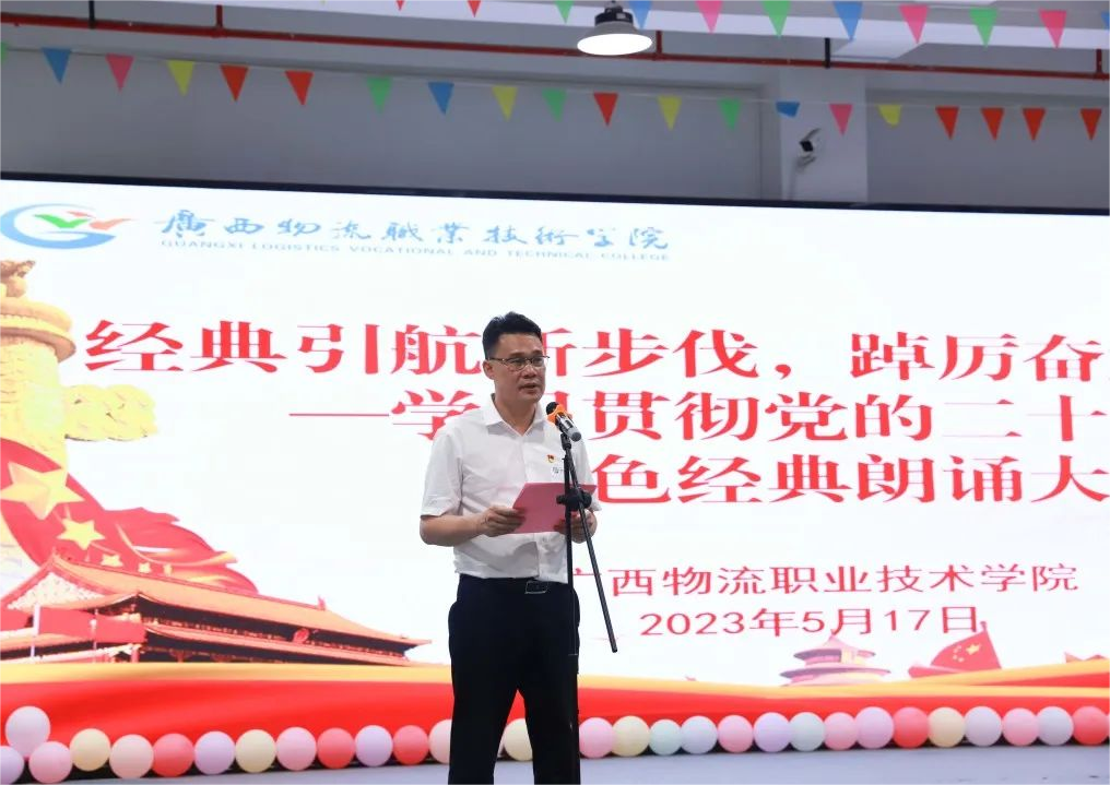 为深入学习贯彻党的二十大精神,引领全校师生用声音传递奋斗之志,以初心凝聚奋进力量,2023年5月17日晚,pp电子官方网站举办“经典引航新步伐,踔厉奋发新征程”红色经典朗诵比赛决赛。学院党委书记韦光茂、副院长陈赋光出席活动。