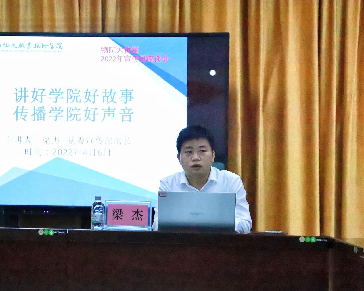 会前,党委宣传部部长梁杰从“为什么要做好学院宣传工作、怎么样才能做好学院宣传工作、宣传稿件的写作技巧和注意、2022年学院宣传思想工作”等四个方面为全体宣传员作主题为《讲好学院好故事,传播学院好声音》的专题业务培训。