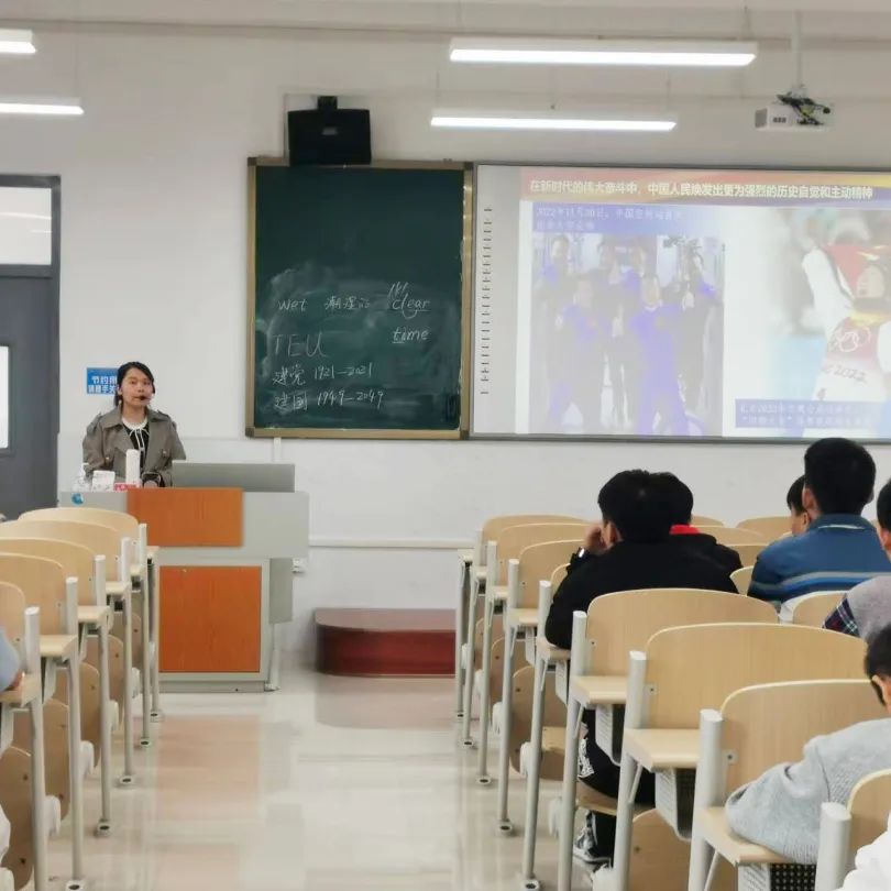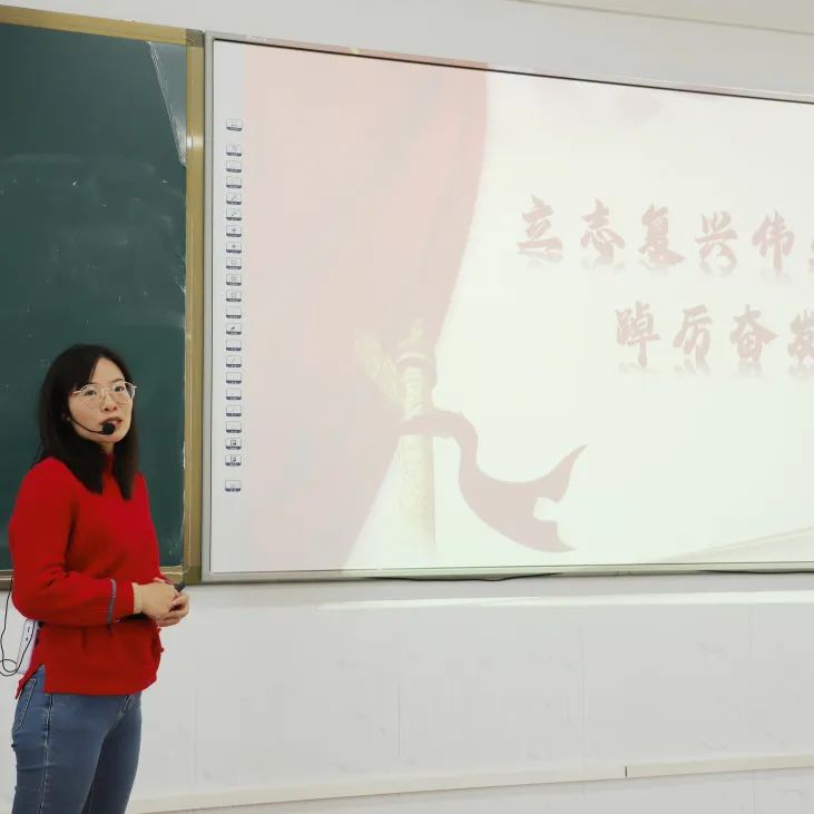 ▲纪委书记覃丽燕讲授题为“立志复兴伟业,踔厉奋发前行”思政课