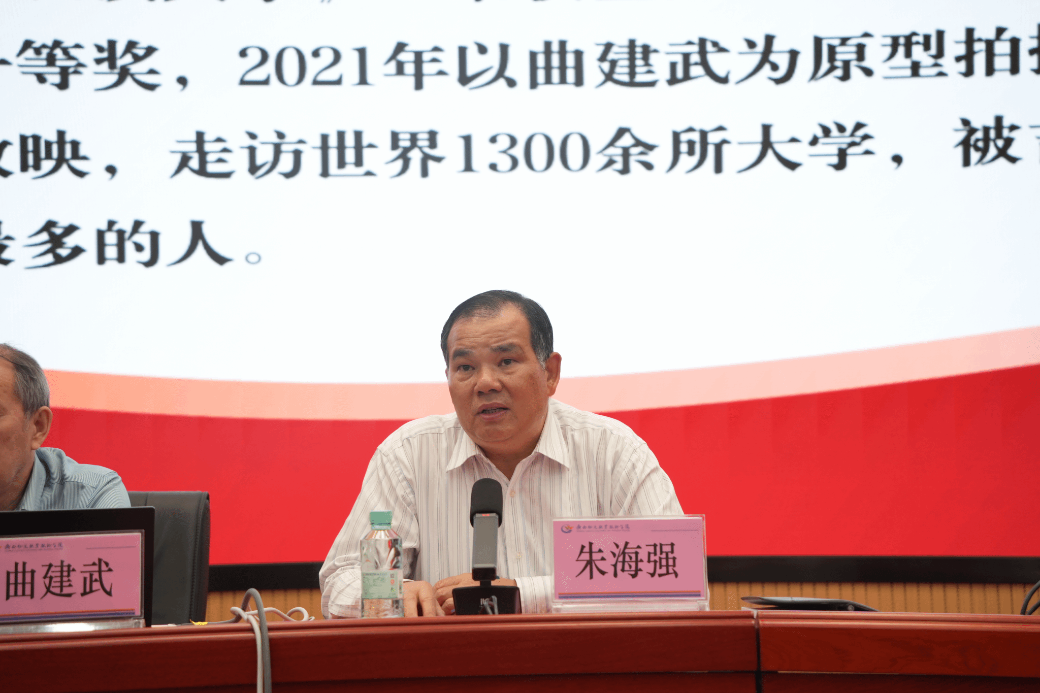 朱海强在主持时表示,曲建武教授以其深厚的学术造诣和丰富的实践经验,深入剖析了教育家精神在育人工作中的重要性,为我们指明了在新时代背景下,如何以教育家精神引领学校发展和人才培养的新方向,既有理论的高度,又有实践的深度。我们要进一步弘扬教育家精神,不断提升自身的专业素养和育人能力,努力培养出更多具有社会责任感、创新精神和实践能力的高素质技术技能型人才。