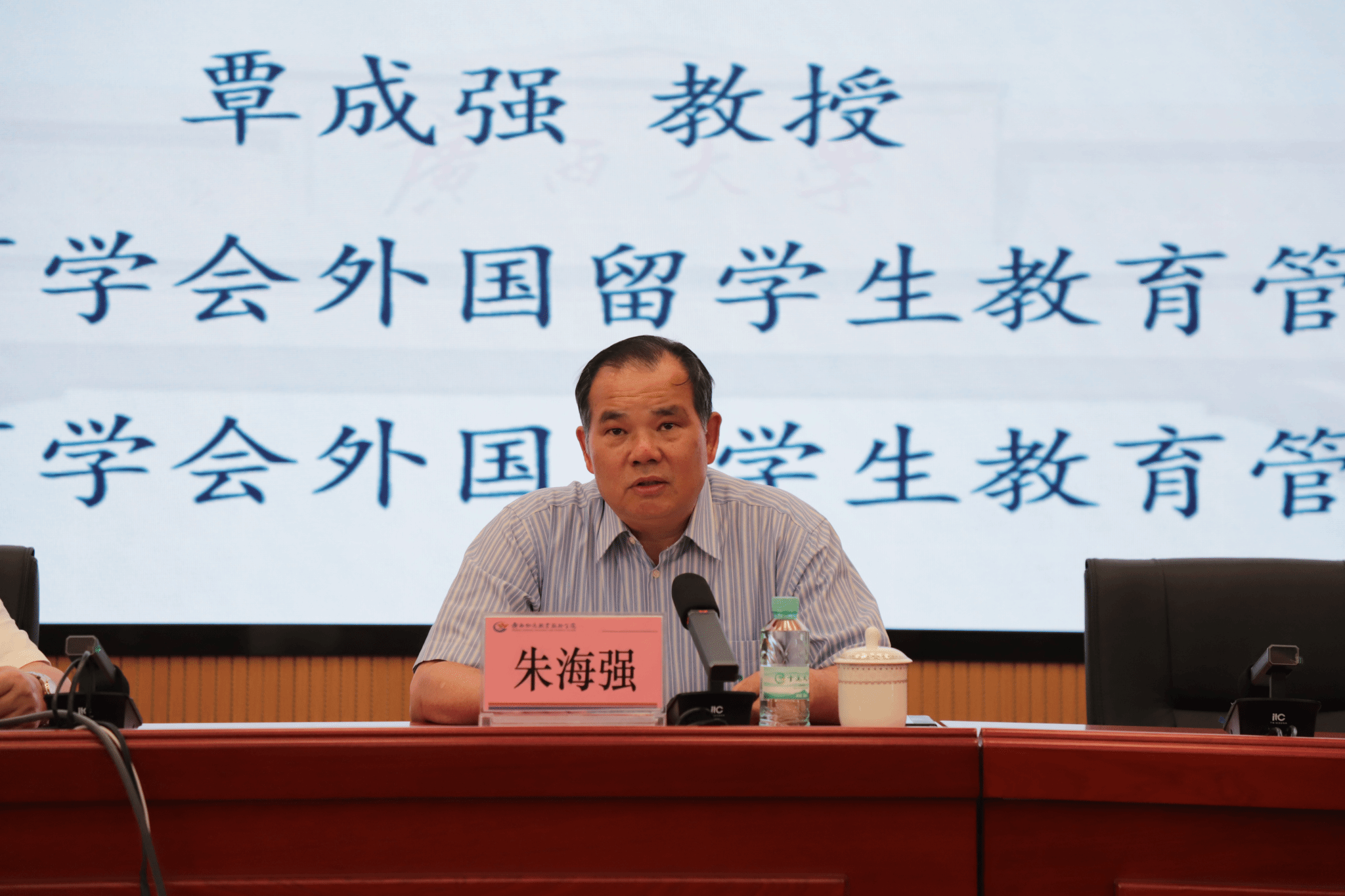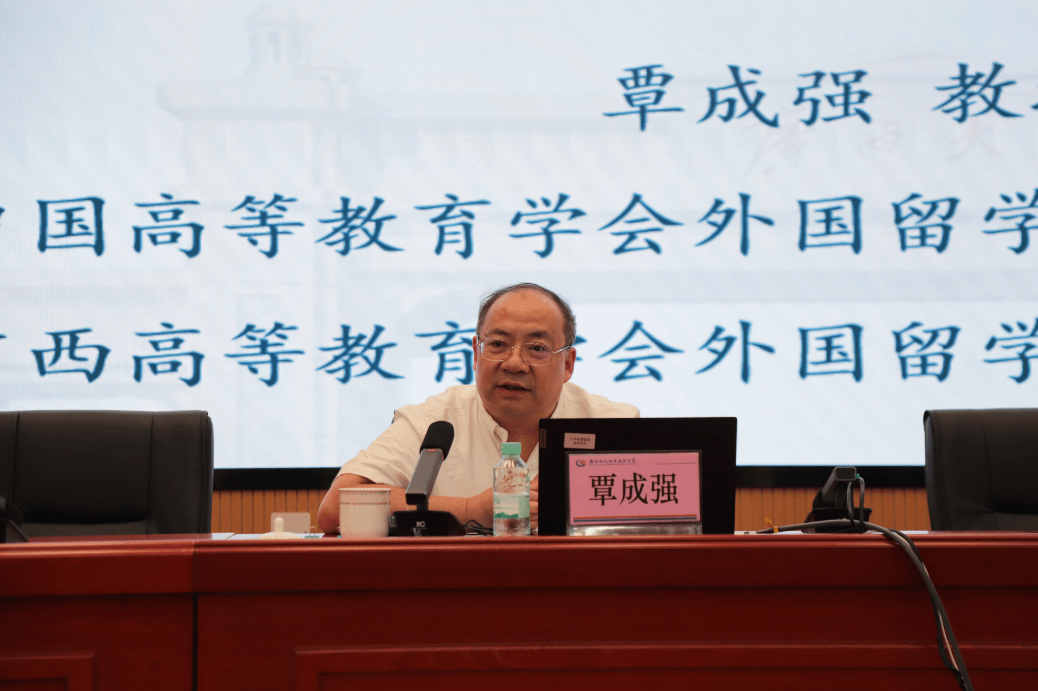 2025年4月15日,为积极响应国家职业教育国际化发展战略,提升pp电子国际化办学水平,pp电子特邀中国高等教育学会外国留学生教育管理分会副理事长,广西高等教育学会外国留学生教育管理专业委员会理事长覃成强教授为全校教职工带来了一场题为《广西高职院校提高国际化水平的SWOT— PEST分析》的主旨讲座。讲座由学校党委副书记、校长朱海强主持。