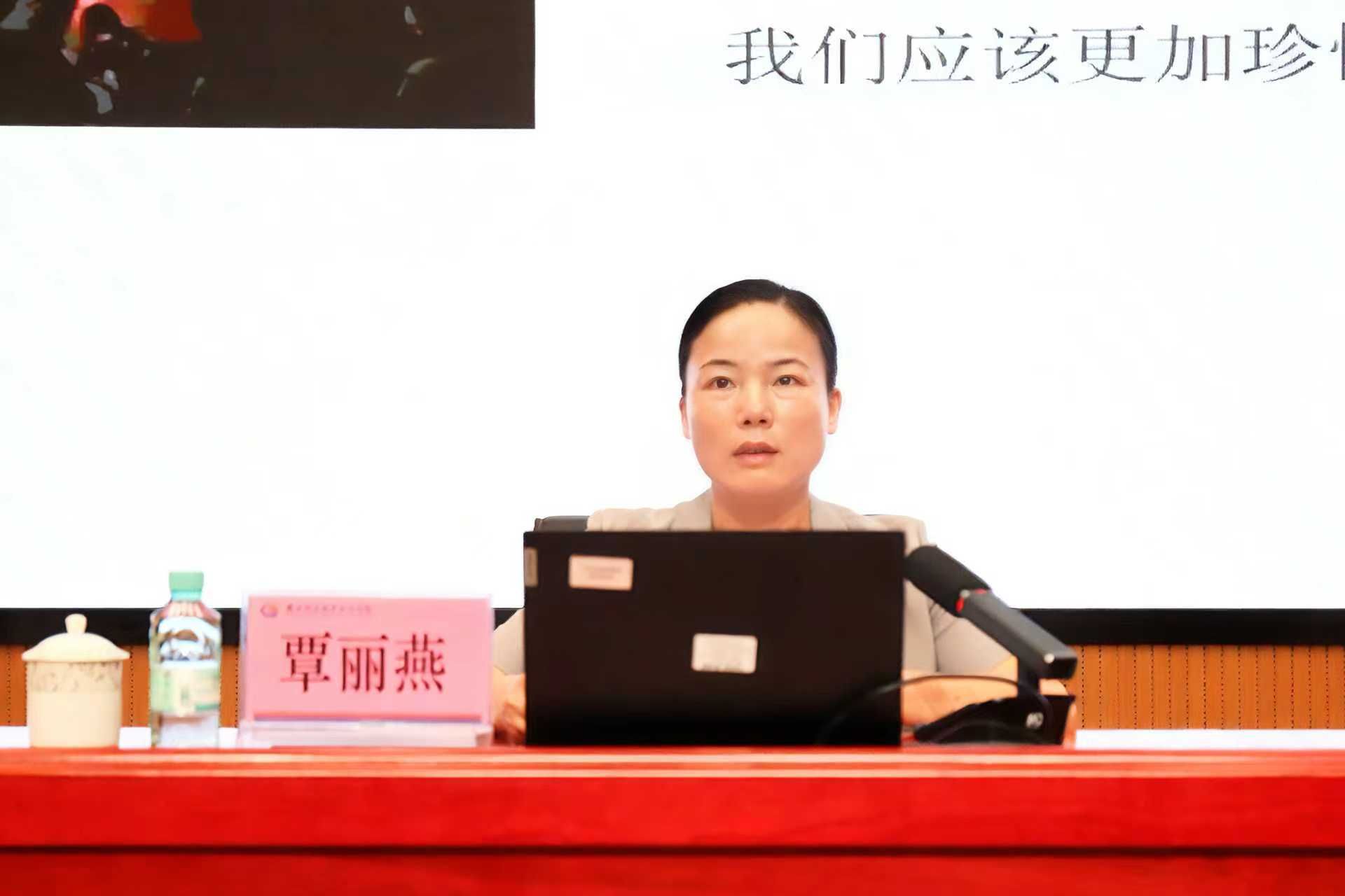 ▲党委委员、纪委书记覃丽燕为学生上开学第一课