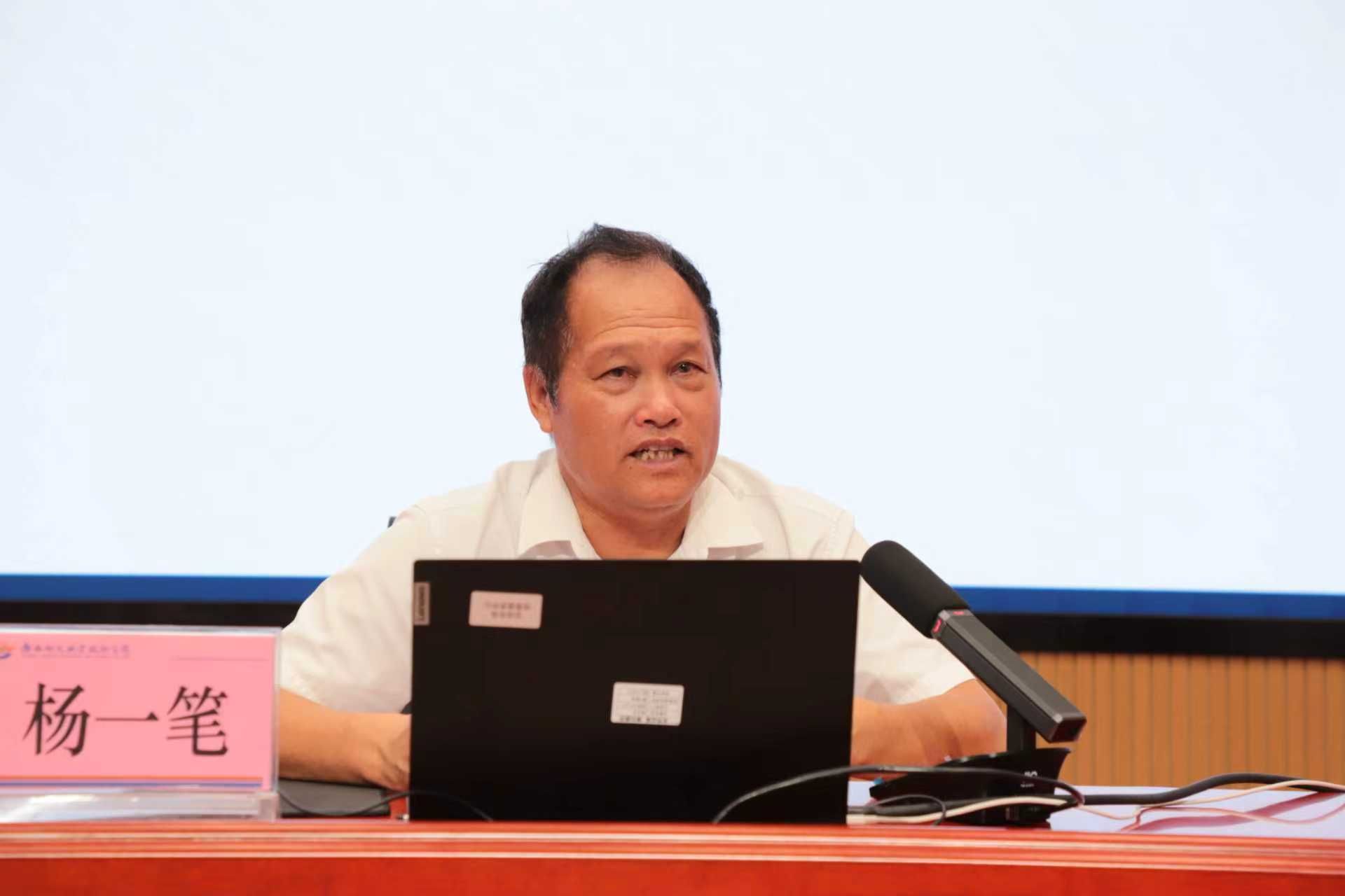 ▲党委副书记、工会主席杨一笔为学生上开学第一课
