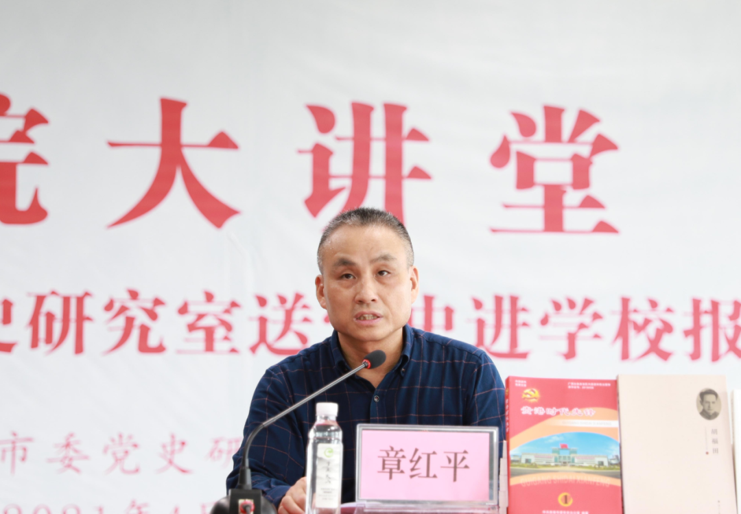 报告会开始前,黄明珠代表贵港市委党史研究室为学院赠党史学习教育书籍,倡导学院全体师生在党史学习教育中先学一步、学深一层,努力做到“学史明理、学史增信、学史崇德、学史力行”。