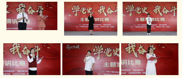本次比赛由党委宣传部、马克思主义学院、校团委、人文教育学院的6位老师担任评委。比赛开始,来自各个班级的15位优秀学生代表依次登台亮相展现风采,从不同角度、不同方面抒发对党的敬仰和热爱之情。他们身上“青春向党,奋斗报国”的正气感染了在场每一个人,在场评委和观众在参赛者的演讲中仿佛身临其境,感受着中国共产党一路走来的艰辛和挫折,深刻领悟到中国共产党可歌可泣的红色精神真谛,受益匪浅。