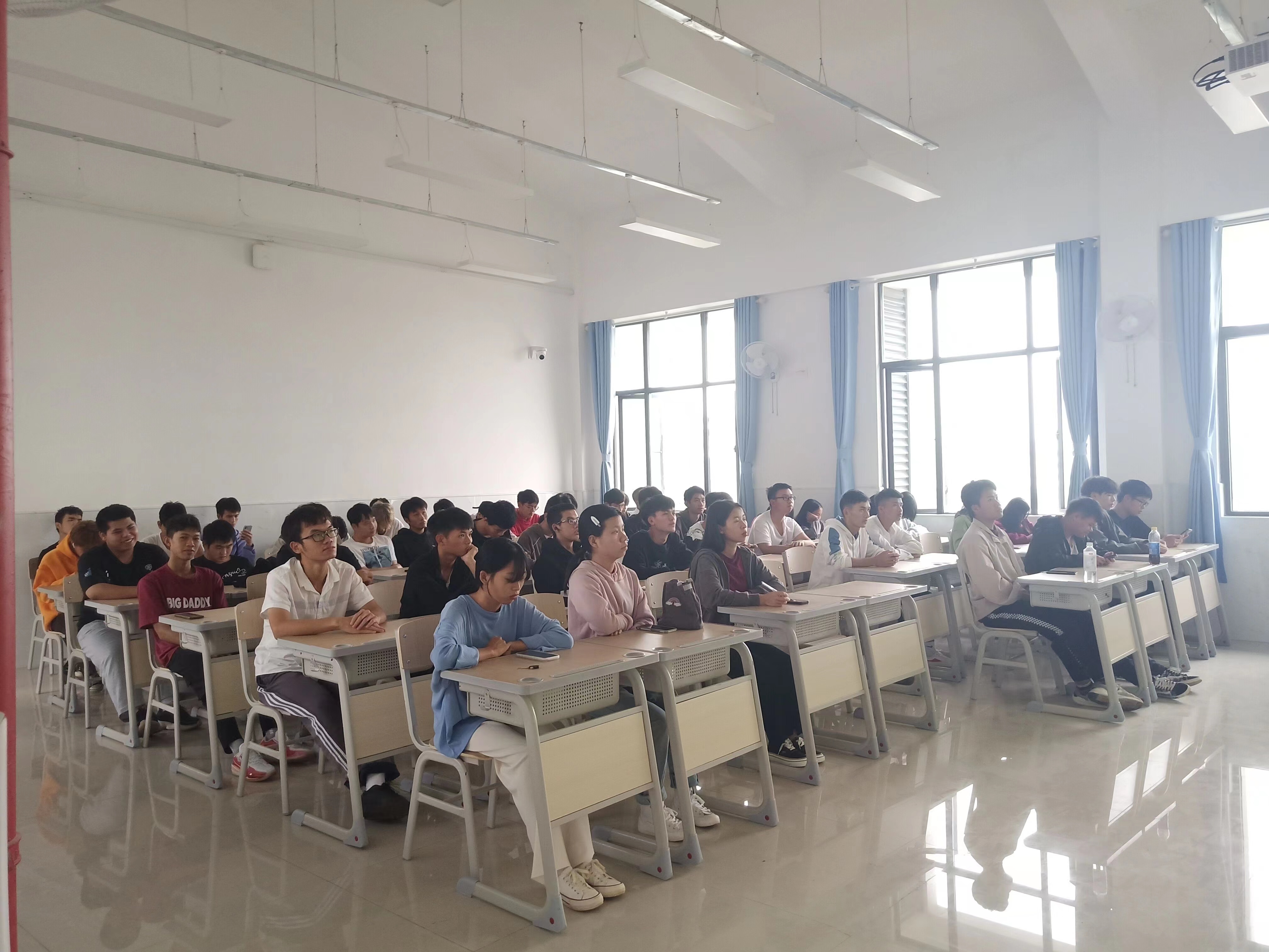 学院党委副书记、常务副院长朱海强,学院顾问周树刚、党委副书记章红平、纪委书记覃丽燕、副院长杨一笔、副院长李波参加报告会。各部门、二级学院负责人,900余名学生在主会场现场聆听报告,其余师生通过直播方式同步收听收看报告。