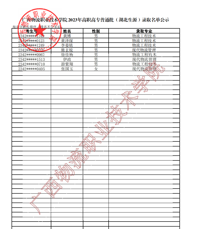 pp电子官方网站2023年高职高专普通批(湖北生源)录取名单公示