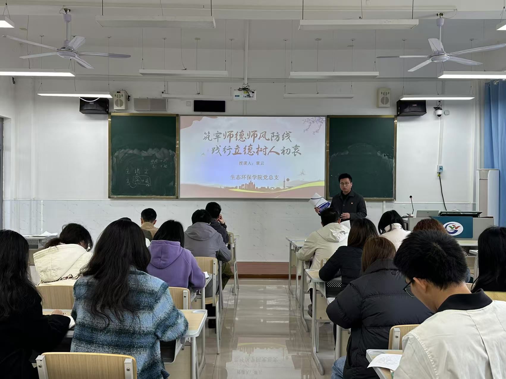 2025年3月18日上午,生态环保学院党总支在南山北楼403教室召开了以“铸牢师德师风防线 践行立德树人初衷”为主题的党课活动。...