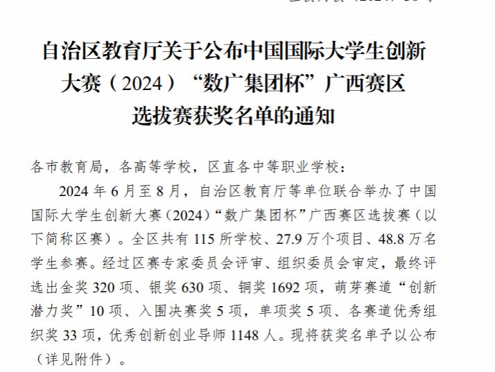 近日,中国国际大学生创新大赛(2024)“数广集团杯”广西赛区选拔赛获奖名单揭晓。pp电子共斩获银奖1项,铜奖7项,实现了pp电子...
